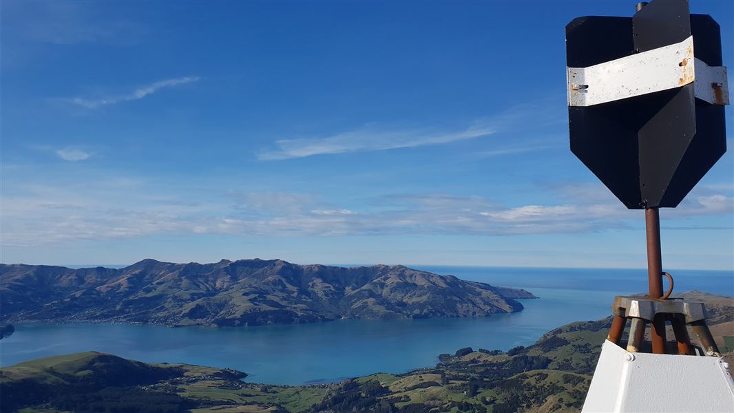 The track soon levels out and leads around a basin where you can look down on regenerating bush and the popular climbing routes on Coffin Rock. Continue along the track as it climbs to the trig station and enjoy stunning views over Akaroa Harbour.