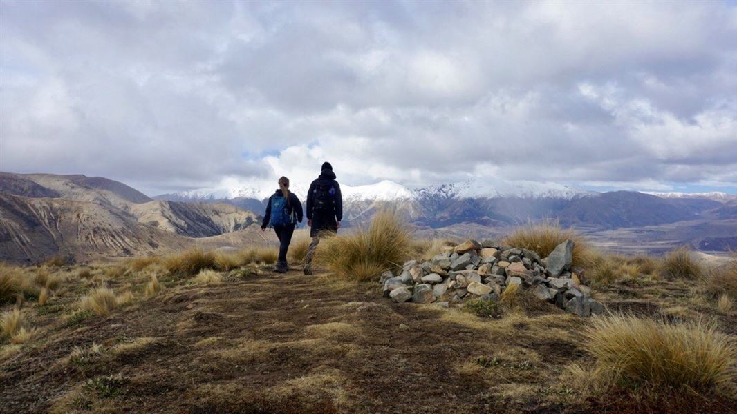 From Lyndon Saddle, the track climbs along a steep ridge with open screes between the beech forests. The top of Helicopter Hill (1256 m) is covered with tussock and low hebes and grasses. From here there are spectacular views of the Craigieburn and Torlesse ranges and the limestone landscape of Castle Hill Basin.