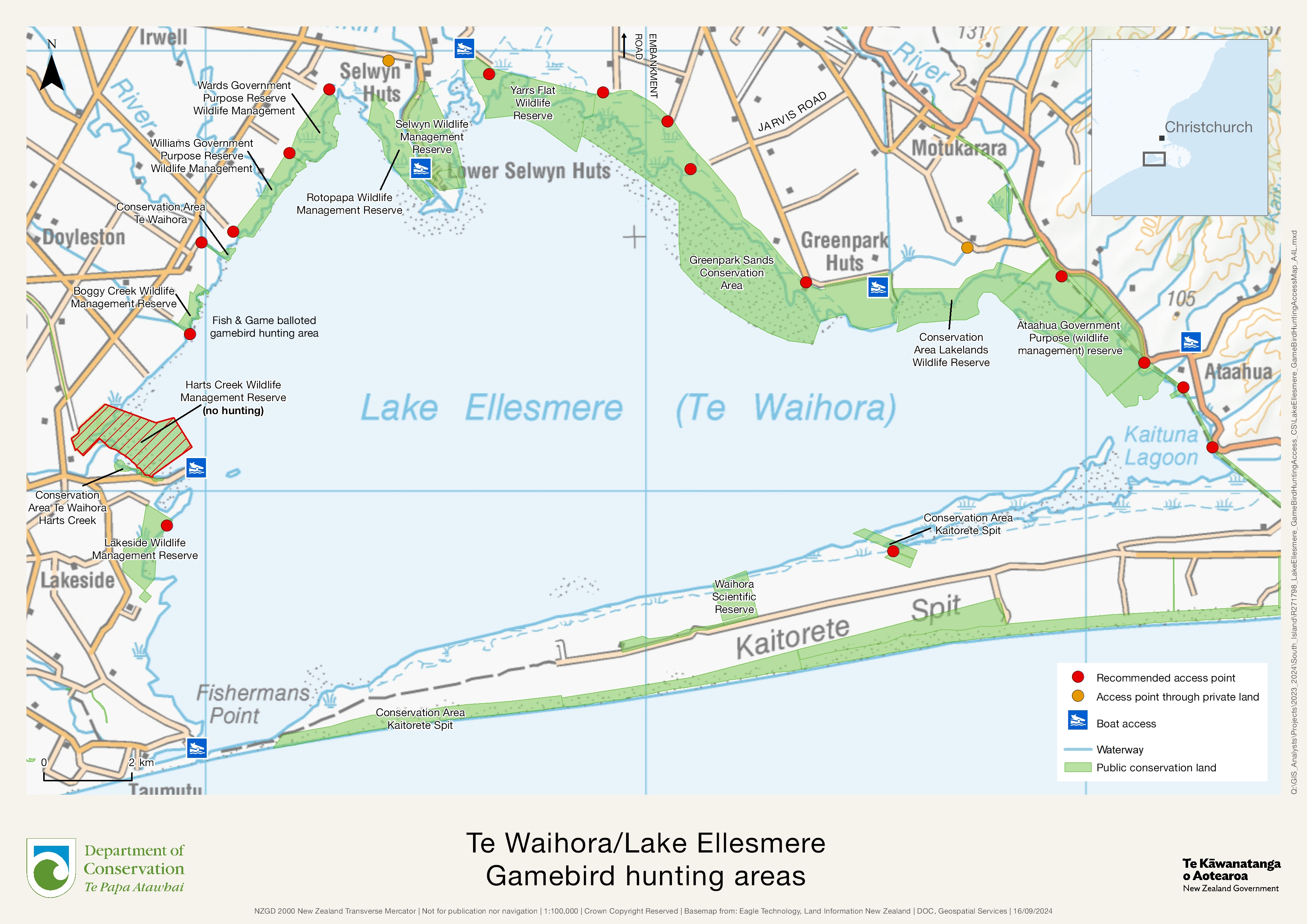 Much of the lake and some land around it are subject to the statutory Te Waihora Joint Management Plan. Commercial hunters need to contact Ngāi Tahu for a permit.