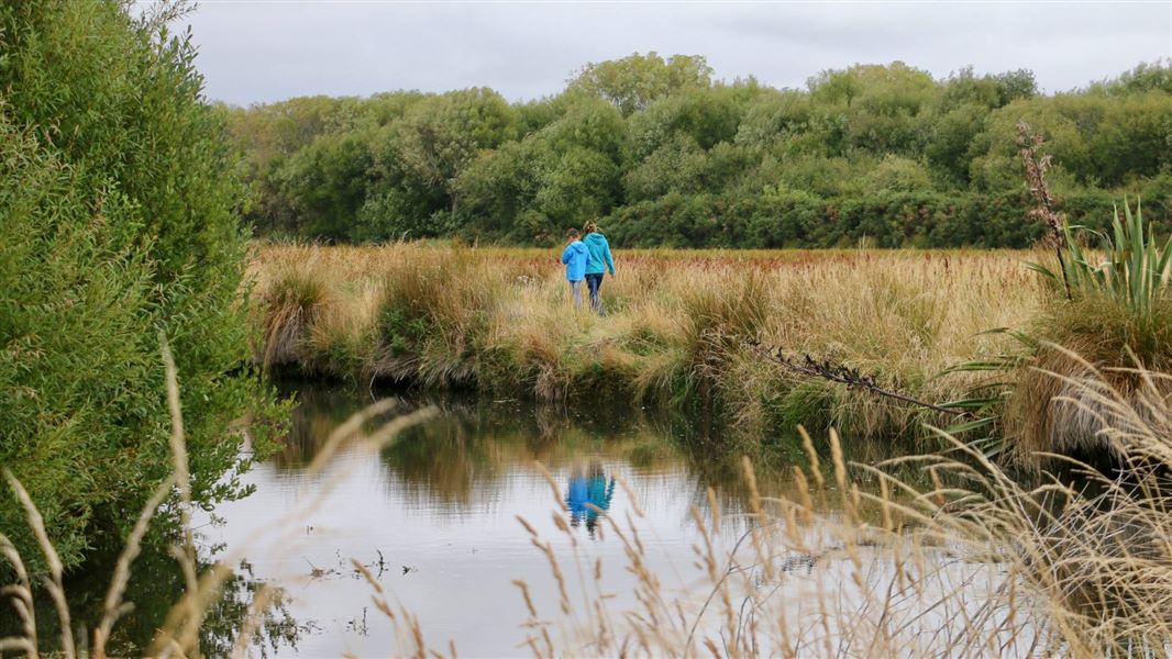 Start at the reserve car park. The flat track passes through native trees then runs along a stop bank beside grassy paddocks for 1.2 km - about 10 to 15 minutes.