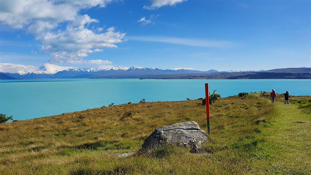 The track passes through moraine hummocks and circles a distinct kettle hole within the Pukaki Kettle Hole Scenic Reserve. The kettle hole was formed by melting glacial ice – interpretation signage on site provides information about this.