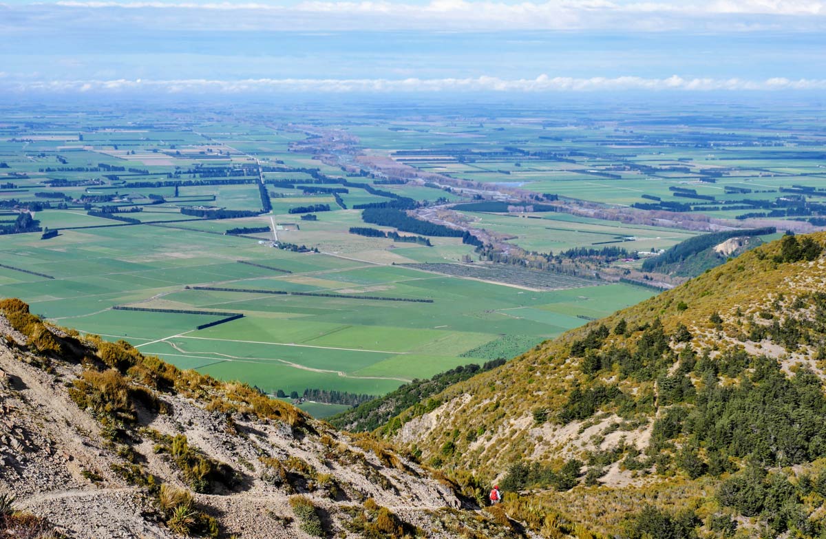 On a clear day there are good views from Scotts Saddle to Pudding Hill Stream, Mount Hutt ski field, Canterbury plains and the Port Hills above Christchurch.