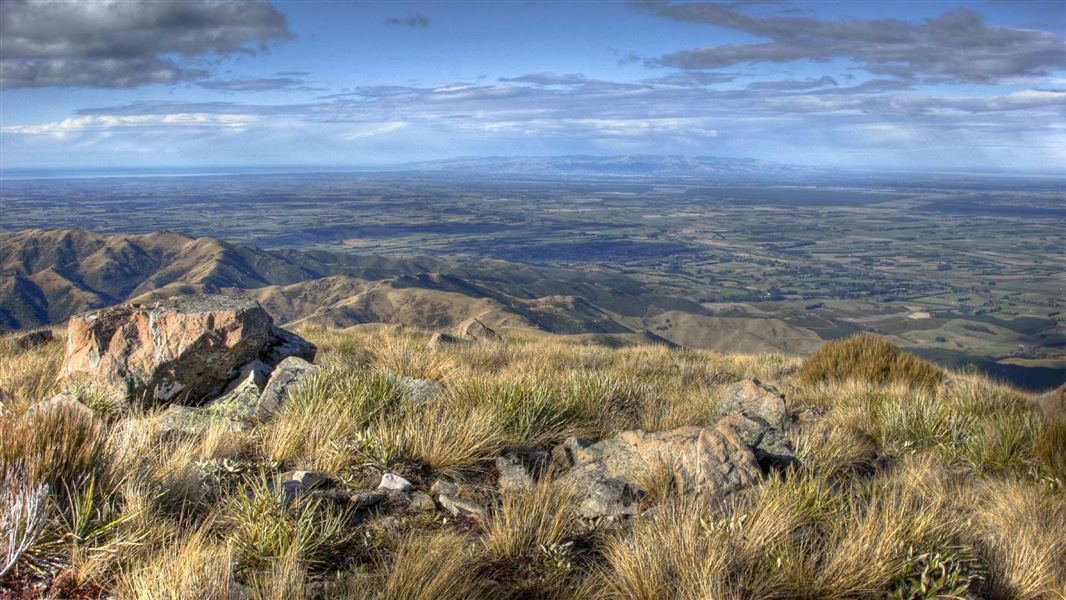 From the summit of Mt Oxford (1364 m) there are good views of the Canterbury Plains and into Lees Valley.