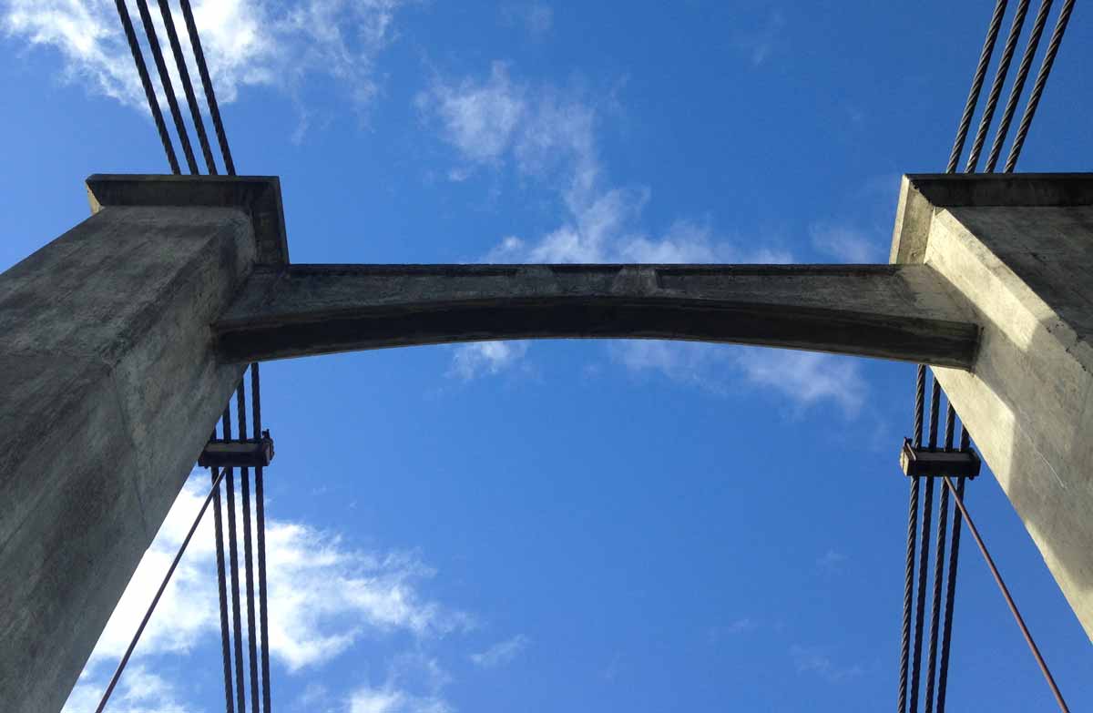 The bridge’s span is 61 m and its reinforced concrete towers are 7 m tall.