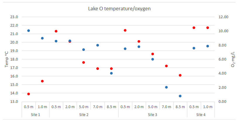 Earlier monitoring had shown that the summer water temperature in Lake Otamangakau could exceed 20°C at the surface and oxygen concentration could fall below 5 parts per million (ppm) at the bottom of the lake.