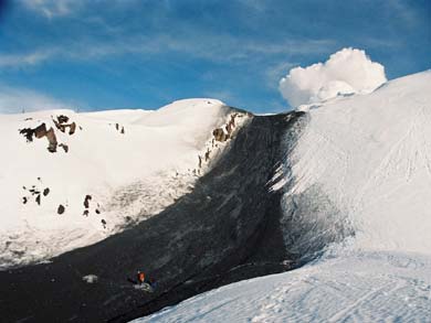 - If you see flying rocks, or a steam and ash cloud coming towards you, take shelter behind a bank or ridge and cover your head with your pack.