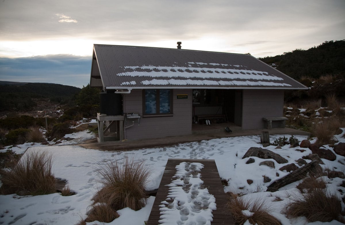 Leaving the hut, the track winds its way through stunted beech forest, then up the valley to the Round the Mountain Track junction. Turn left here towards Bruce Road.