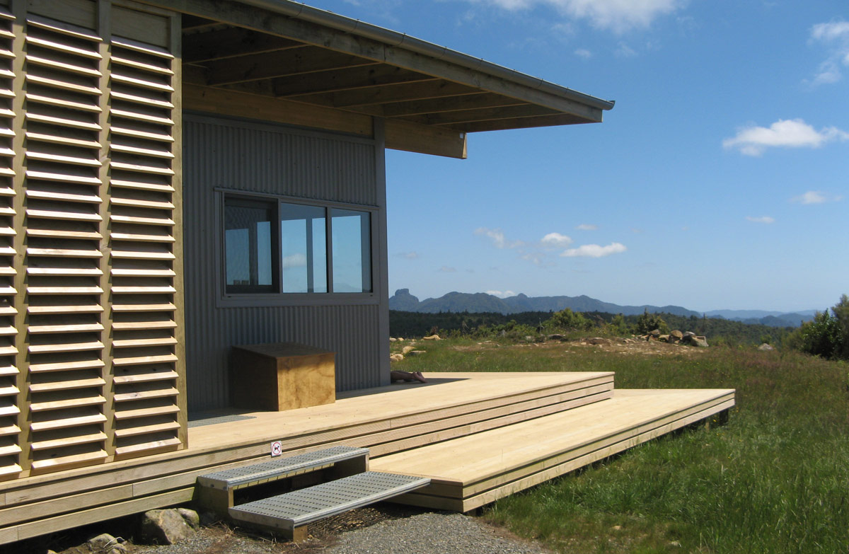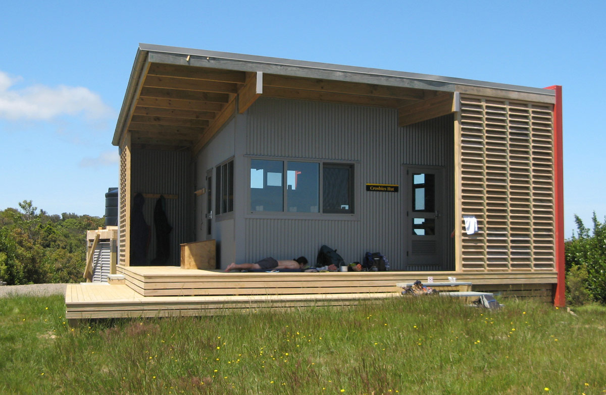 Crosbies Hut was built in 2010 and offers panoramic views of the Coromandel Main Range - north towards Maumaupaki and Mercury Bay and from the Firth of Thames in the west to Table Mountain and the Upper Kauaeranga Valley in the east. The lights of Whitianga are visible at night.