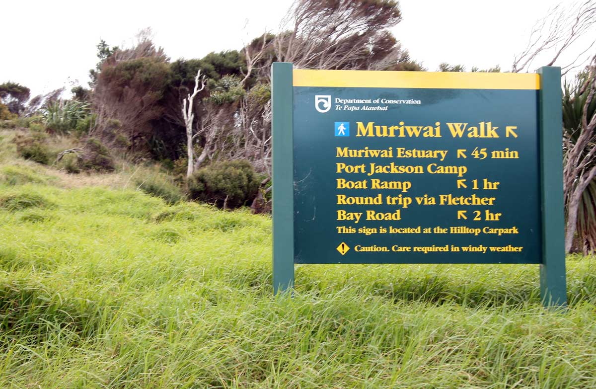 You will see views across to Great Barrier and the Hauraki Gulf. Follow along the track until you get to Muriwai estuary (note this is easier to cross at low tide) and continue along the beach until you get to the boat ramp at Port Jackson campsite. Walk through the campsite and head back up Fletcher Bay Road to the Hilltop car park or turn around and return via the Muriwai walk.