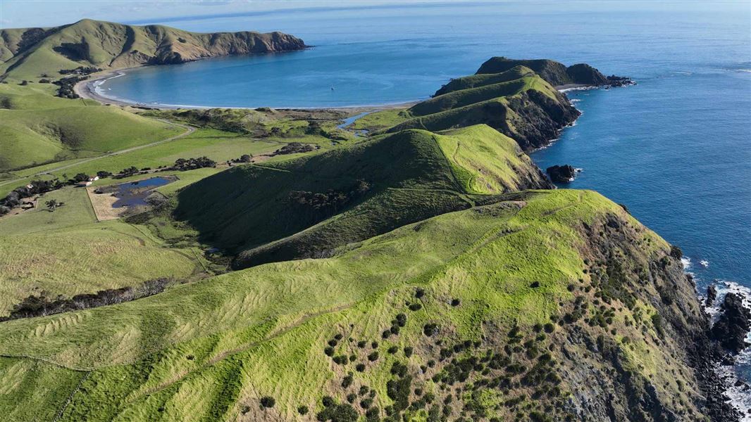 This stunning coastal walk leaves the car park and heads along a benched farm track along the ridge towards Wharekaiatua Pa. Domed topped bollards mark the walk as it is formed and grassed.