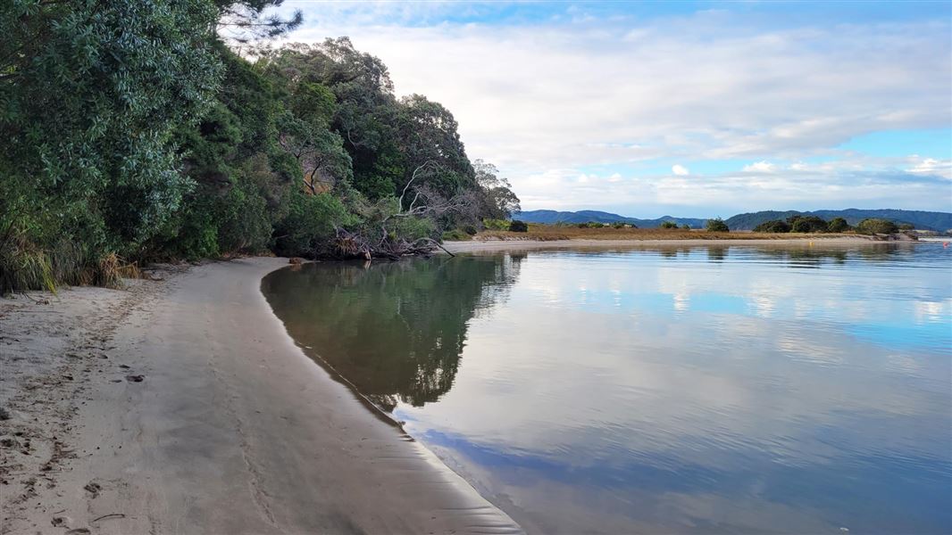 The track follows an old tramway from the car park to a pleasant beach and the site of Craig’s saw mill, built in 1862. See Historic Opera Point.
