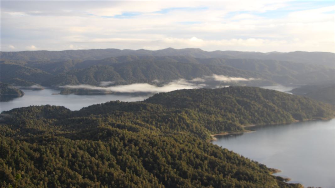From Panekire Hut, the track heads south-west down the range to the top of the Panekire descent. From here the track drops steeply off the range into rolling valleys of beech, podocarp and kamahi forest and the lake.