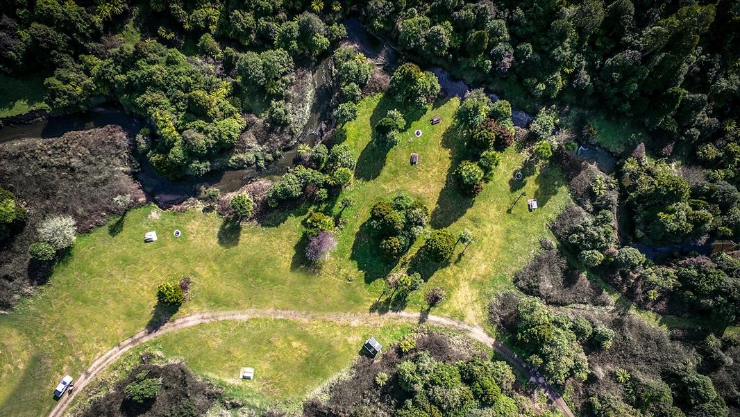 Camp on grass terraces adjacent to Okahu Stream, with good picnicking and walking in he forest.