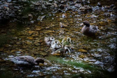 Blue duck/whio are endemic to New Zealand. They depend on fast flowing clean rivers surrounded by native vegetation to survive. However, because of issues like habitat loss and vulnerability to introduced predators, whio are a threatened species.