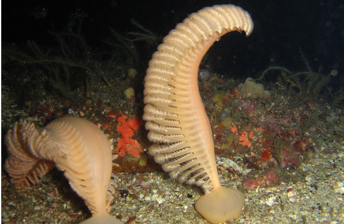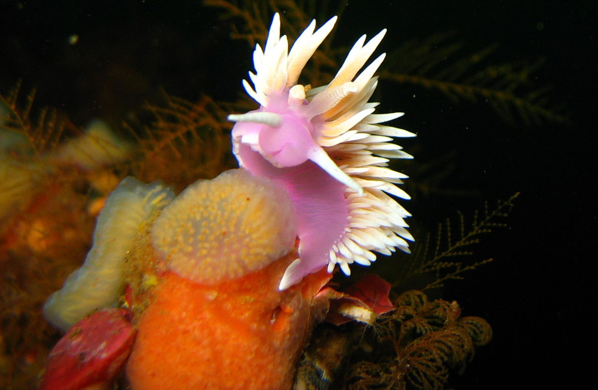 There is very steep rock-wall on the inner northern side of Milford Sound which is dominated by delicate deep water invertebrates. These are animals that are fixed to the rock wall, including encrusting tubeworms, sponges, soft corals, colonial sea squirts, black coral and anemones.