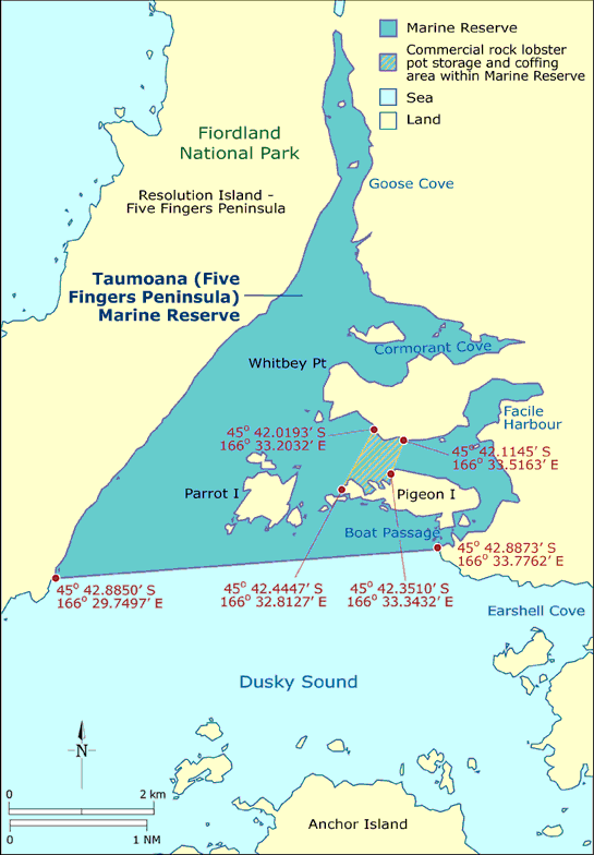 Taumoana (Five Fingers Peninsula) Marine Reserve map (PDF, 766K)