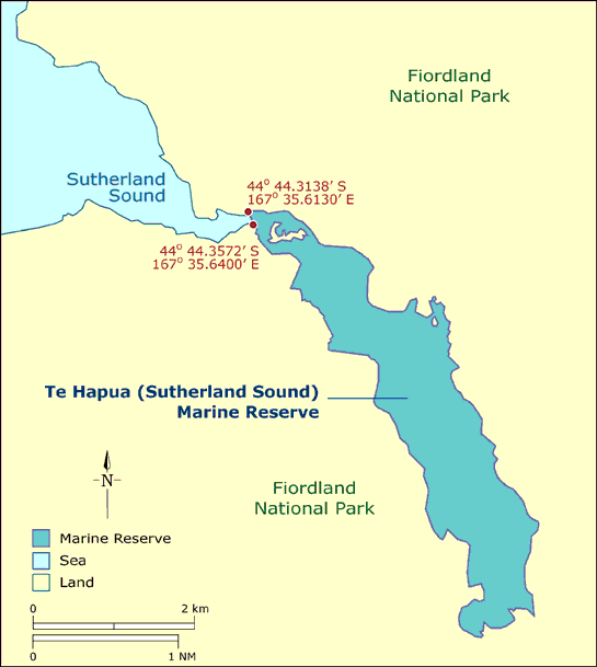 Te Hapua (Sutherland Sound) Marine Reserve map (PDF, 602K)