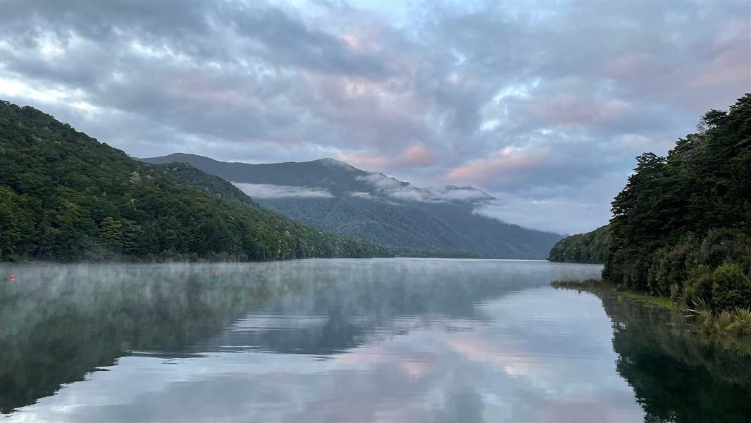 North of Clifden via SH 99, follow Clifden-Blackmount Rd, turn onto Lake Monowai Rd and follow to end.