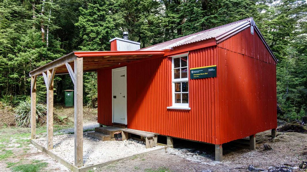 Freeman Burn hut is located at the mouth of the Freeman Burn on the North Arm of Lake Manapouri. Access is by water taxi, or take your own boat, or kayak.