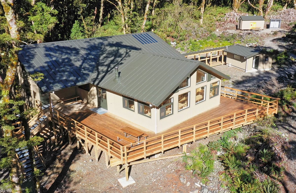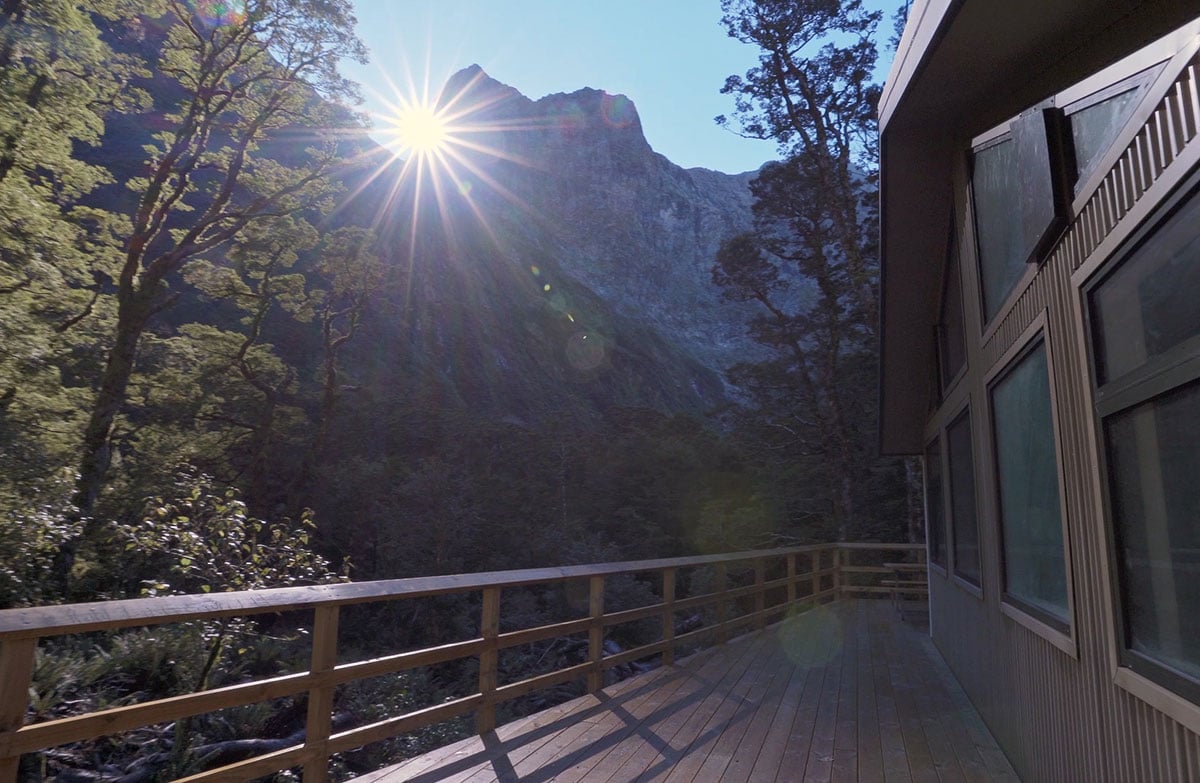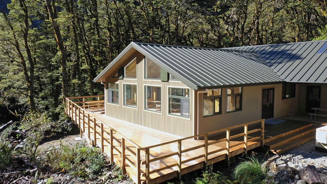 This is one of three DOC Great Walk huts on the Milford Track – the Clinton, Mintaro and Dumpling.