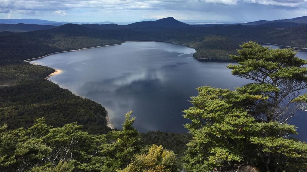 The track near the jetty follows along the lake edge before climbing steeply to the lookout.