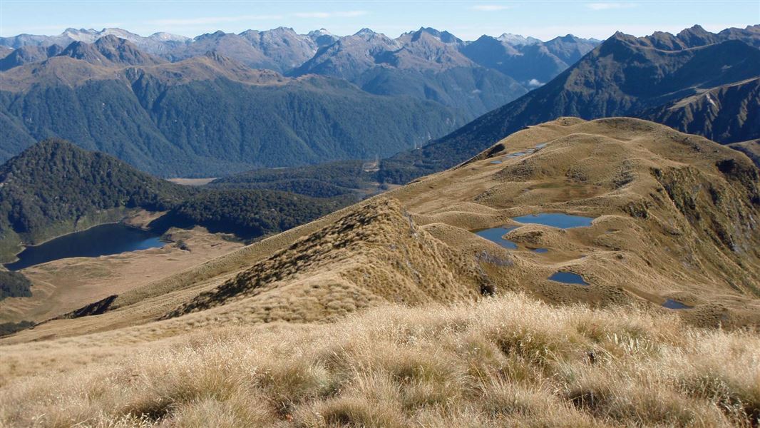 This enjoyable, short tramping track leads from the Borland Saddle through the bush to the open, tussock-covered tops of Mt Burns.