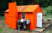 The hut is situated amidst grass and developing pine forest with regenerating native forest nearby.