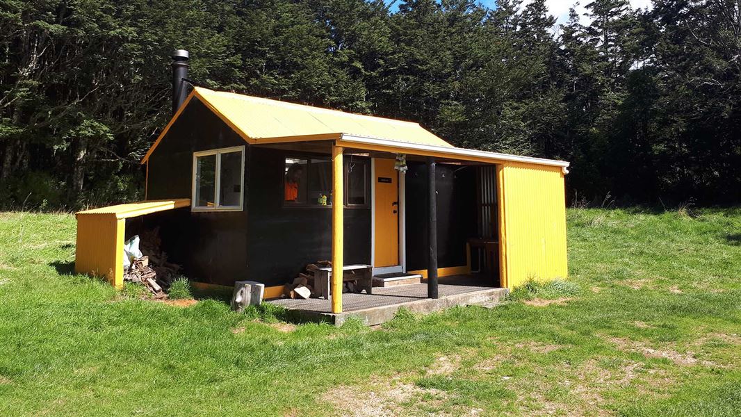 Ruahine Hut was built in 1960 by the New Zealand Forest Service. The hut is located in a sheltered clearing at 920 m altitude, and can experience high rainfall and snow during winter months.