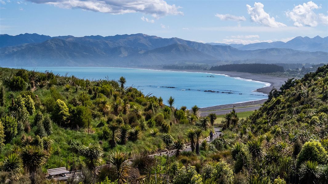 The track crosses the peninsula’s clifftop, with excellent views of the Seaward Kaikōura Range, ocean and coastline, to South Bay. It returns to the township via South Bay and Toms Track.