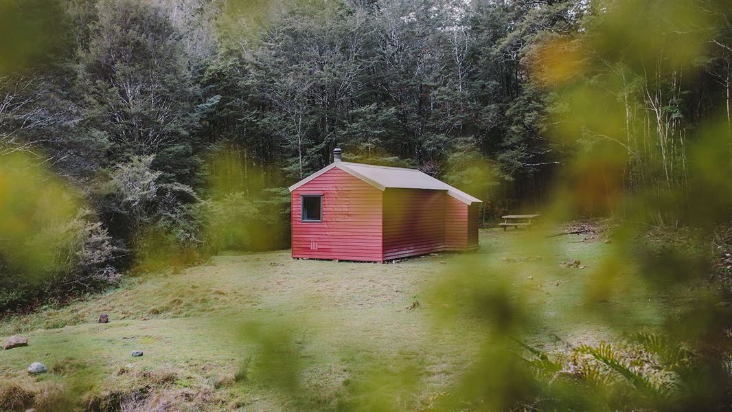 This is a standard 6-bunk hut in the Pelorus River valley.