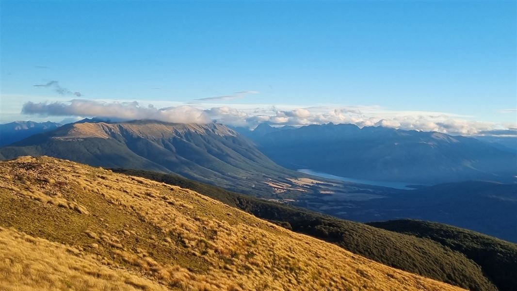 Ride 800 m up the 4WD road to the start of Wots up Doc, a well graded climbing track that climbs to 1000 m before rejoining the 4WD road. Climb the steep but rideable road to 1300 m to the start of Maitland Ridge Track where you emerge from the bush onto open tussock.