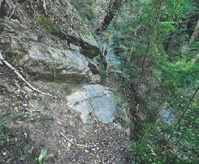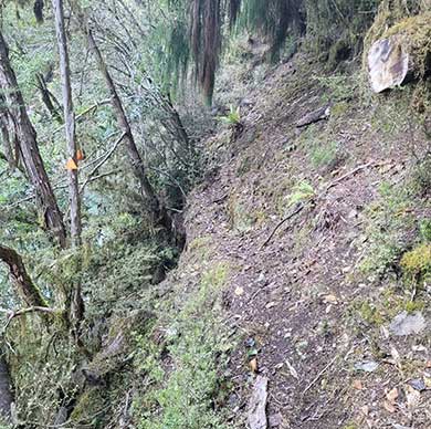 In some areas, the track is slippery and narrow and there are steep drops below the track. Take extreme care and go slowly to avoid falling.