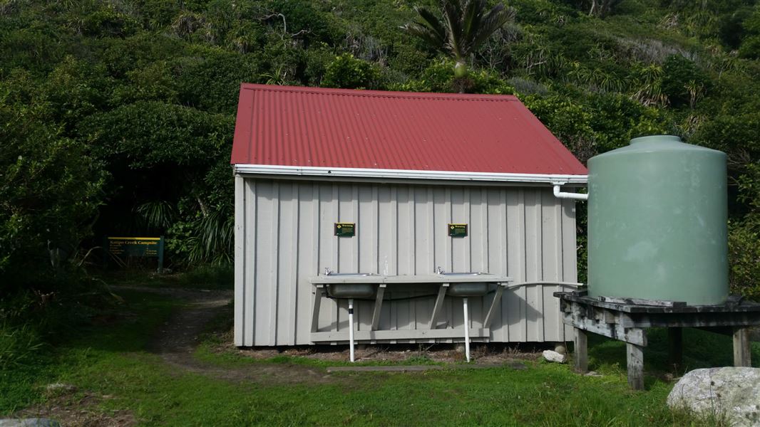 All campsites on the Heaphy Track have water from a tap and toilets that are supplied with toilet paper. Katipo Creek Shelter campsite has a long drop toilet and also sinks.