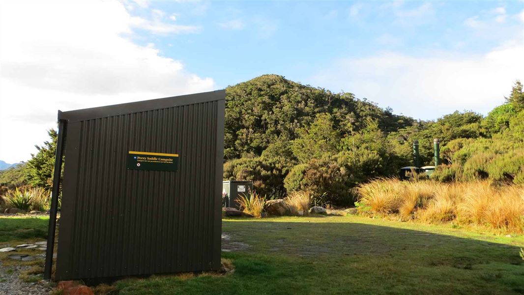 This campsite is beside Perry Saddle Hut. Campers are not permitted to use hut facilities.