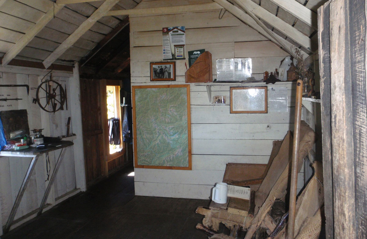 Bunks have been set up in the tiny bedroom and the hut is available as accommodation for trampers.