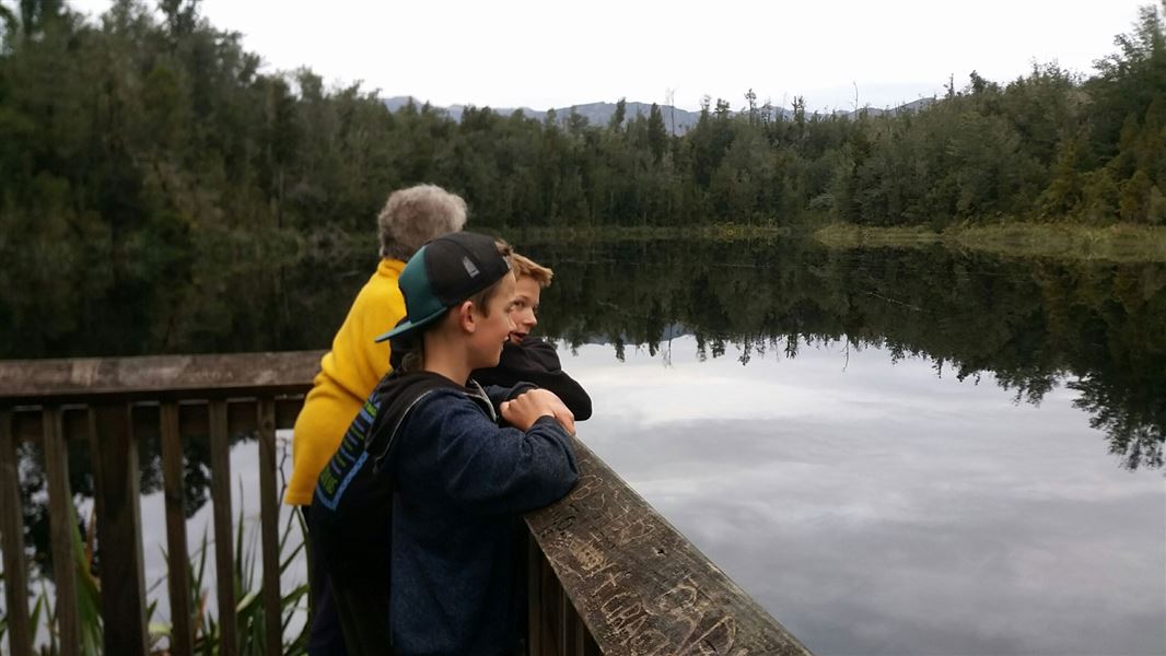 The track to this scenic gem climbs over a forested ridge to a lakeside viewing area, with kahikatea at the water’s edge, backed by beech forest, with occasional podocarp species and southern rātā.