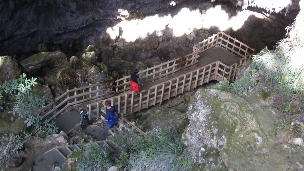 At the cave entrance, stay on the formed track and viewing structure to protect the cave's significant kiokarst features. Be aware of falling rocks and slippery surfaces.