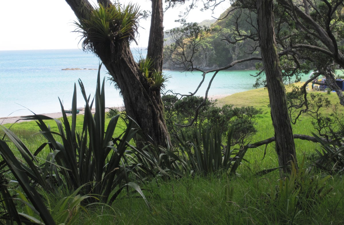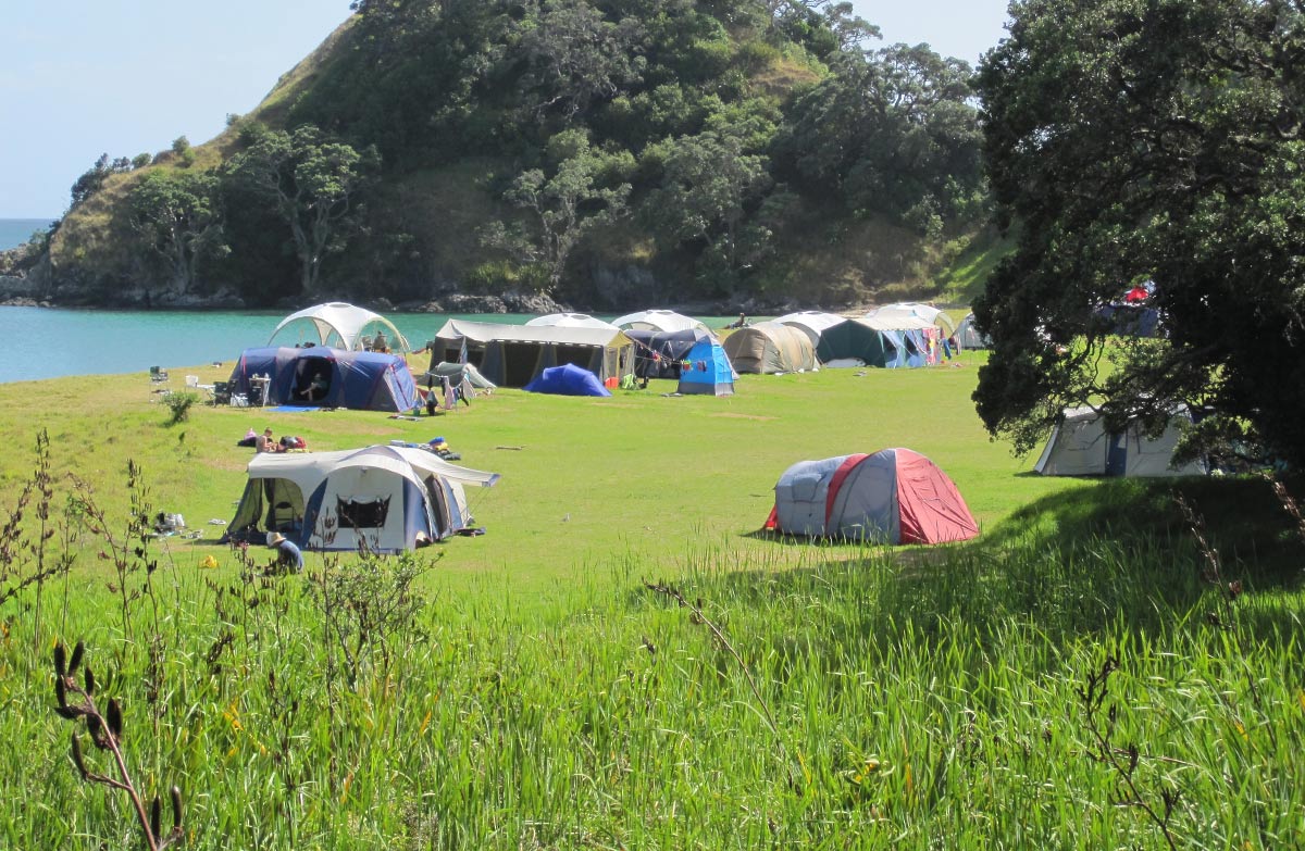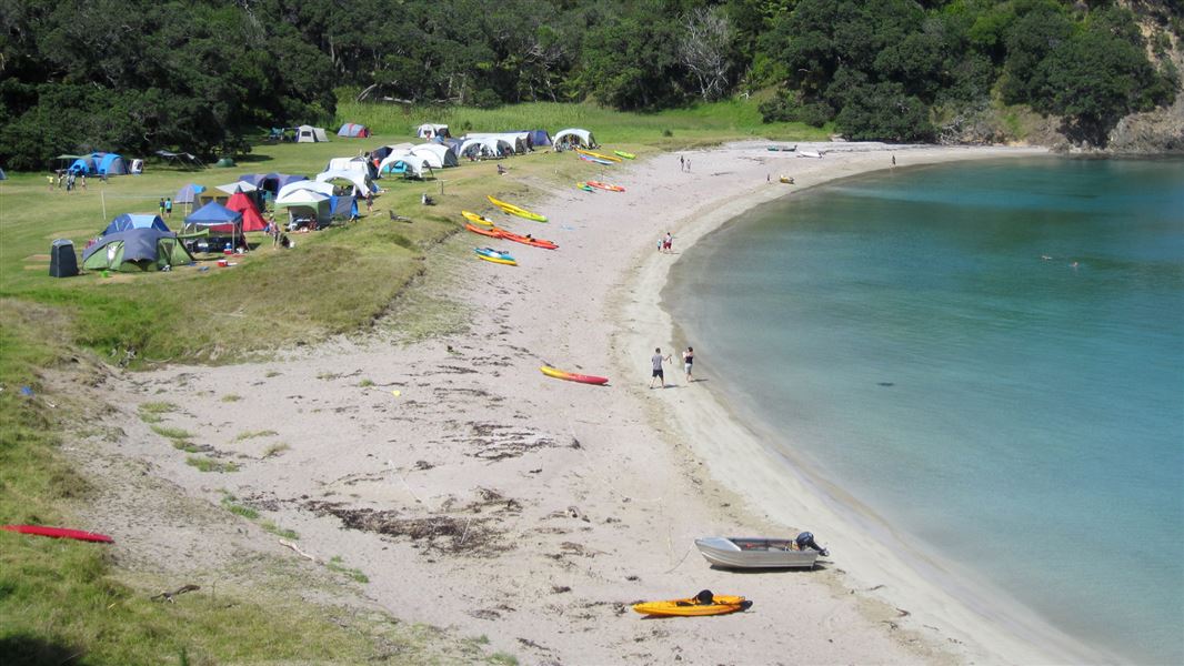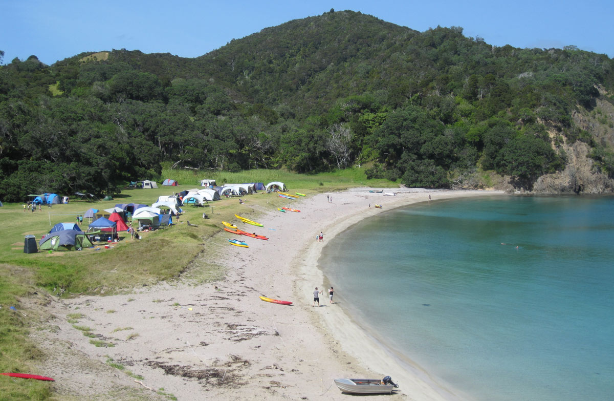 Camp beside a sandy beach among pōhutukawa trees. A great spot for water activities.