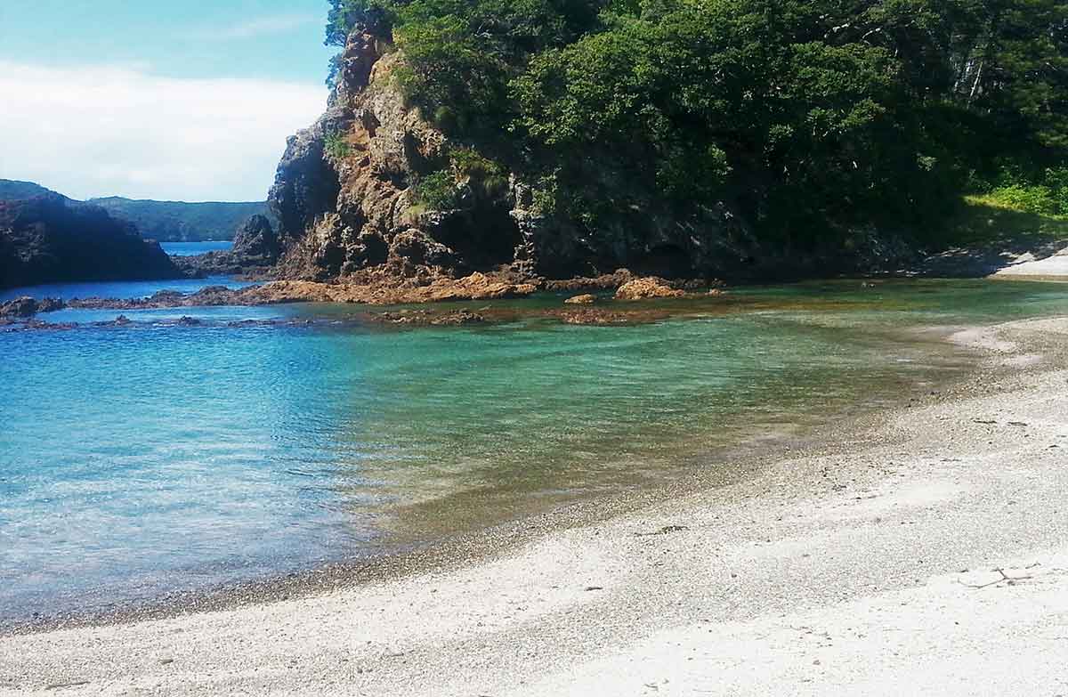 Motuarohia Island has several archaeological sites, including defensive pā, terraces, pits, and gardening lines around the central lagoon area. Its many coves have welcomed both Māori and European navigators, and its unique shingle beach connects the two hills of the island.
