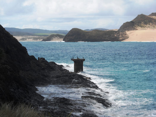 Around its shores, sweep the currents of the Tasman Sea and the Pacific Ocean that meet in a foaming swell of broken water over the Columbia Bank just west of Te Rerenga Wairua.