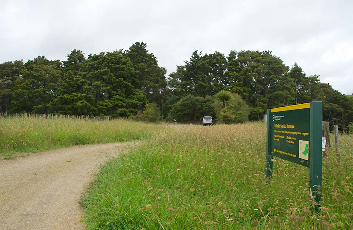 Located 14 km north east of Whangarei, turn off the Whareora-Pataua North Road, cross a bridge and turn left on to Hoban Road. Access to the Taheke Waterfall track is along a private road from the DOC carpark at the end of Hoban Road.