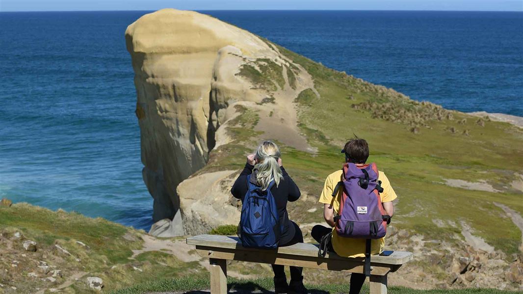 From the Tunnel Beach car park, follow the well-formed path downhill to several viewpoints known as “nests” for views up and down the coast.