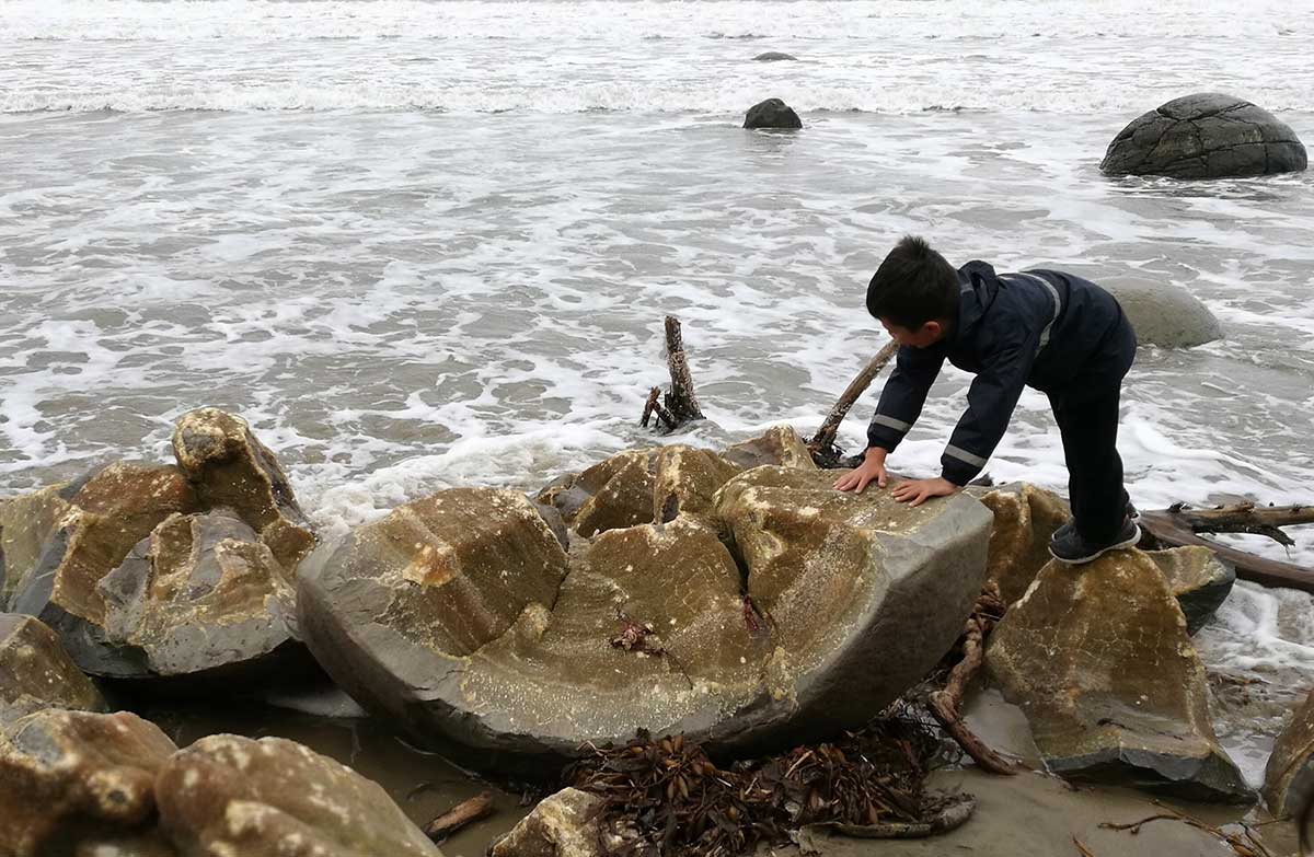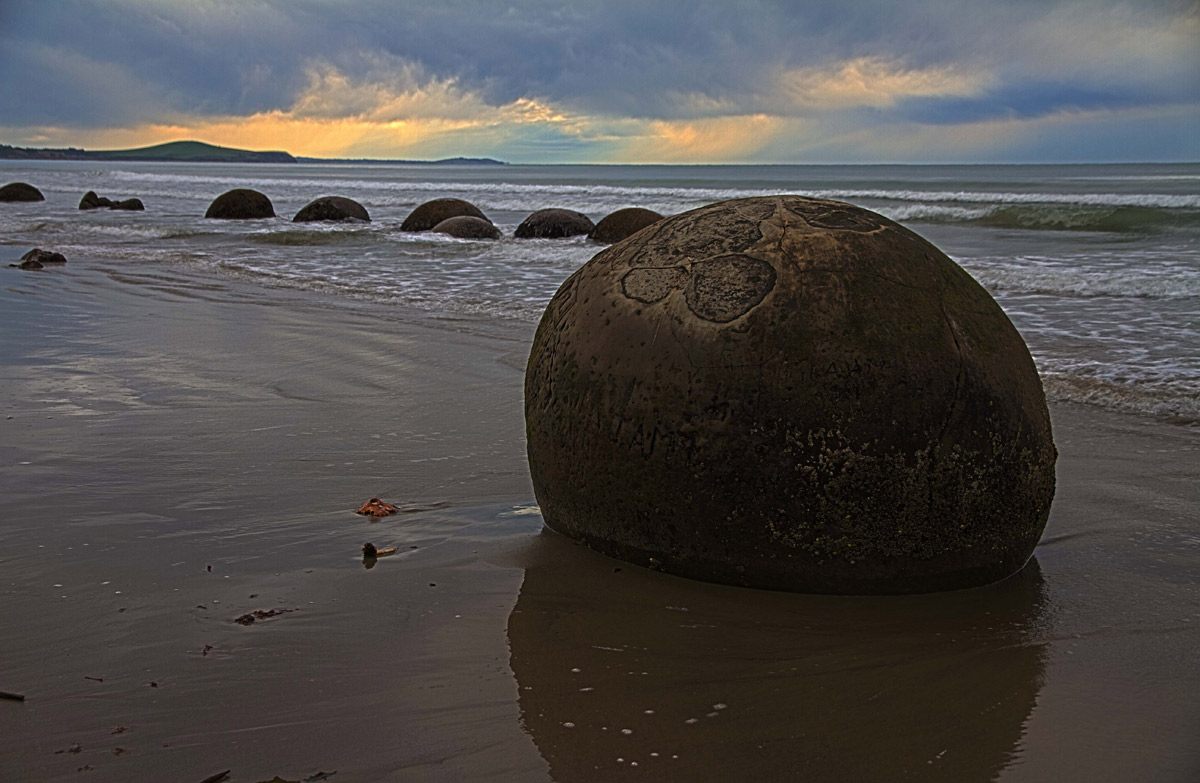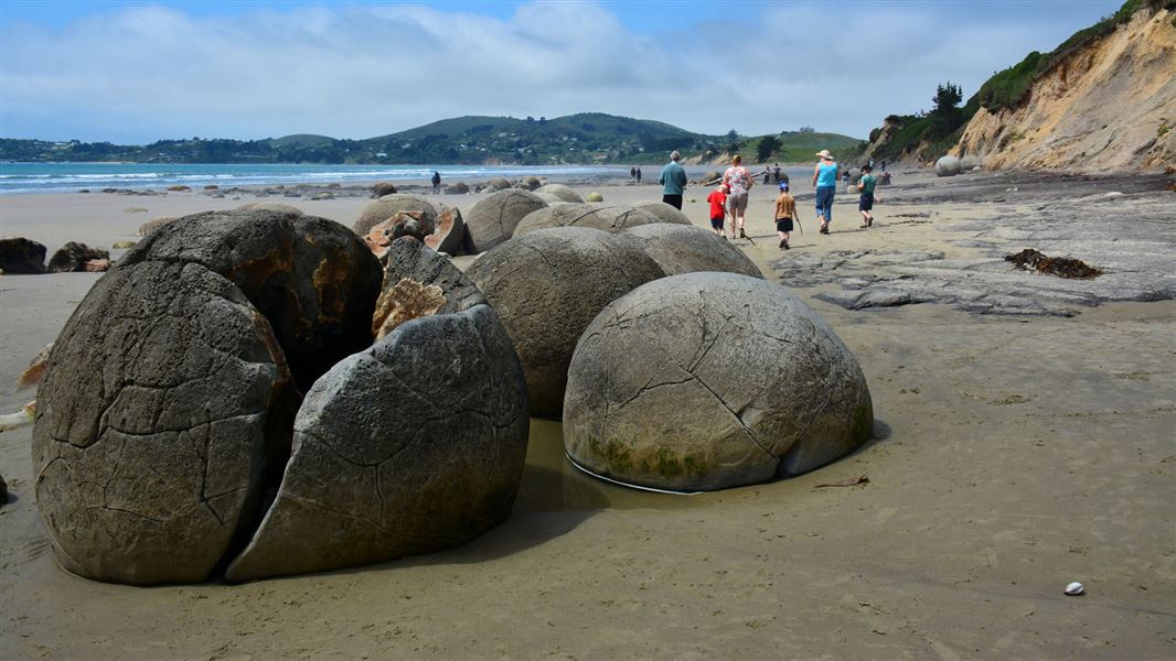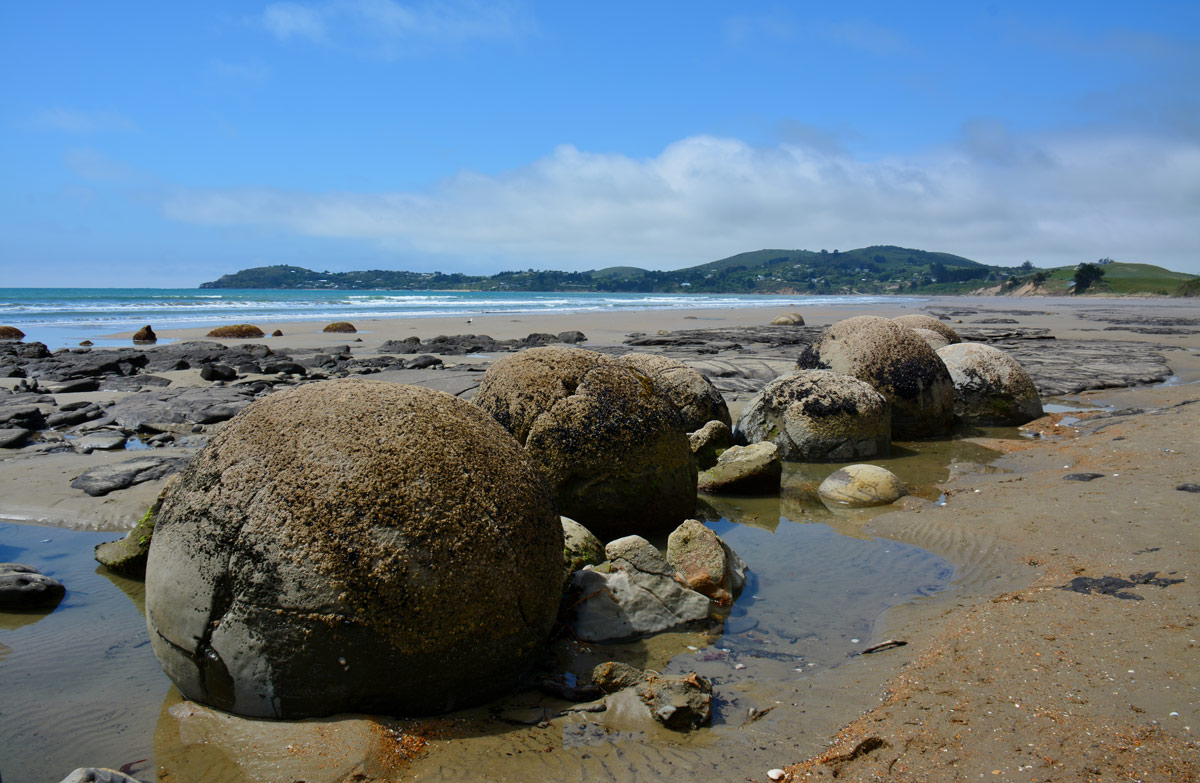 Moeraki Boulders are signposted on SH1 3 km south of Hampden.