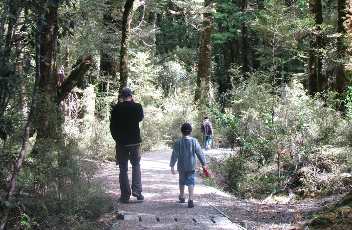 The threatened yellowhead/mohua can often be heard in the canopy.