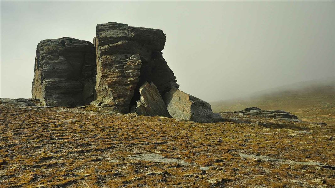 The road is in a very exposed and isolated area with sparse low lying vegetation that has adapted to survive the harsh weather conditions. The area often has boggy ground. Rock tors dot the landscape and extensive views can be had in good weather. This journey offers a look at the very unique landscape typical of the Old Man Range.