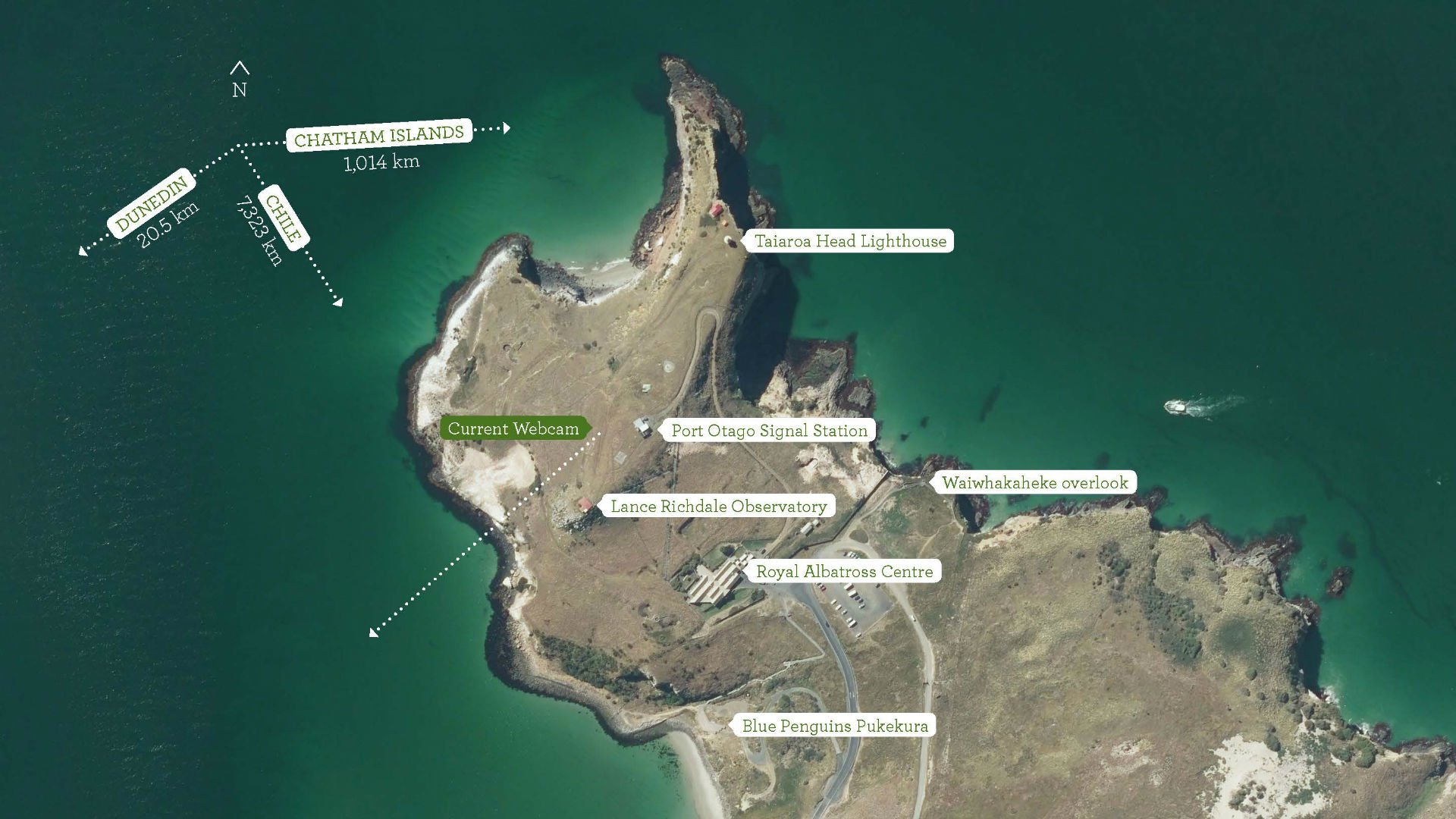 Taiaroa Head's lighthouse is also visible from the site.