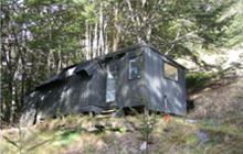 A zigzag journey, Crystal Hut passes the Leviathan Mine’s remains. Scattered relics of the quartz stamping battery lie in the creek bed and the aerial tramway can be traced 200 m to the blocked Crystal Mine entrance above you.