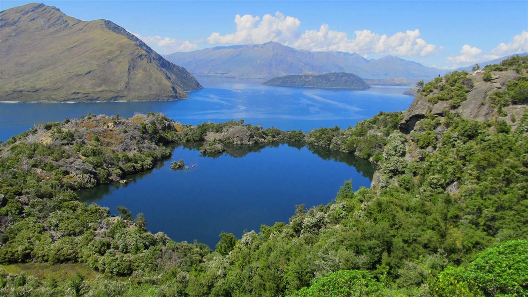 Activities: A return walk (less than 3 km) leads from the wharf up the hill to a viewpoint (450 m) overlooking the fascinating Arethusa Pool and a wider view of Lake Wānaka and surrounding mountains.