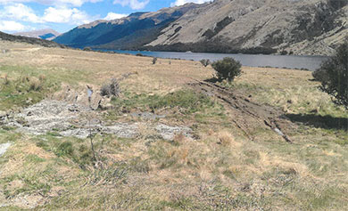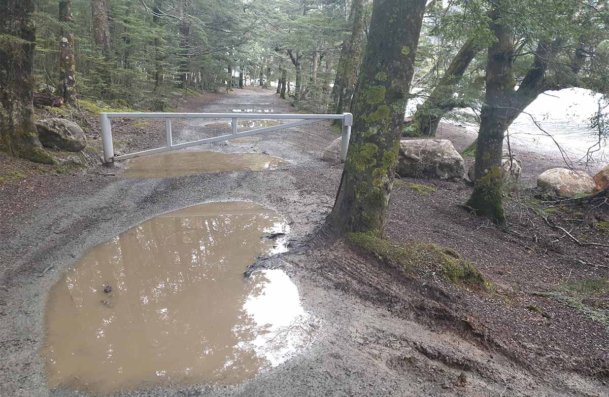 Damage to the track alongside North Mavora Lake