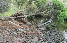 What is left of the Auckland Island's earliest recorded shipwreck and the remnant fireplace of the survivors’ hut are found at Carnley Harbour (north arm).